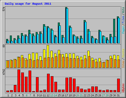 Day | Hits | Files | Pages | Visits | Sites | KBytes | ||||||
